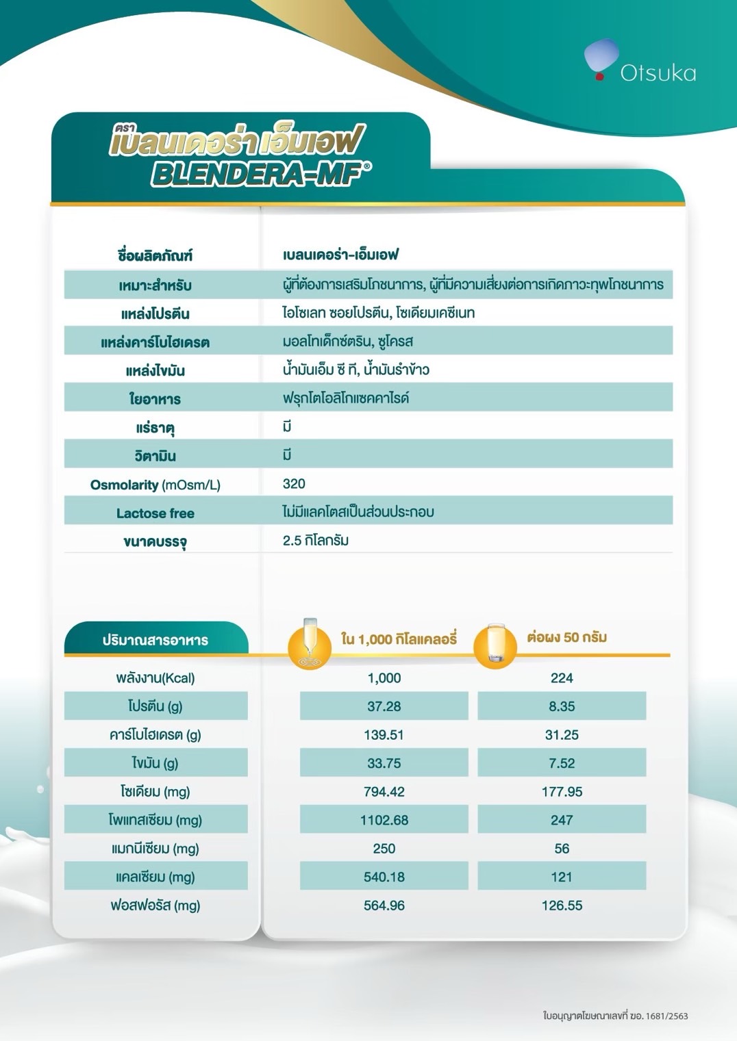 - เป็นอาหารทางการแพทย์สูตรครบถ้วน ประกอบด้วย